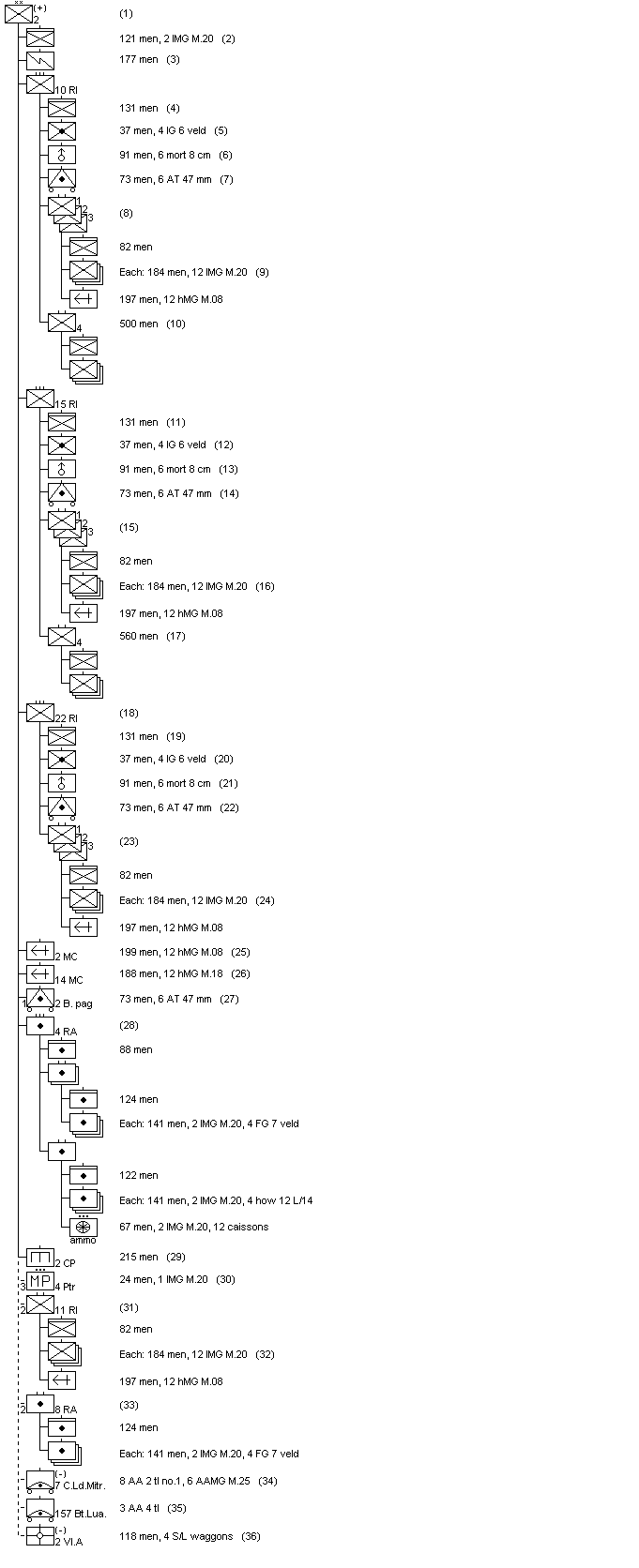 36. Minus two platoons; Oorlogsorganisatiën, p.114.