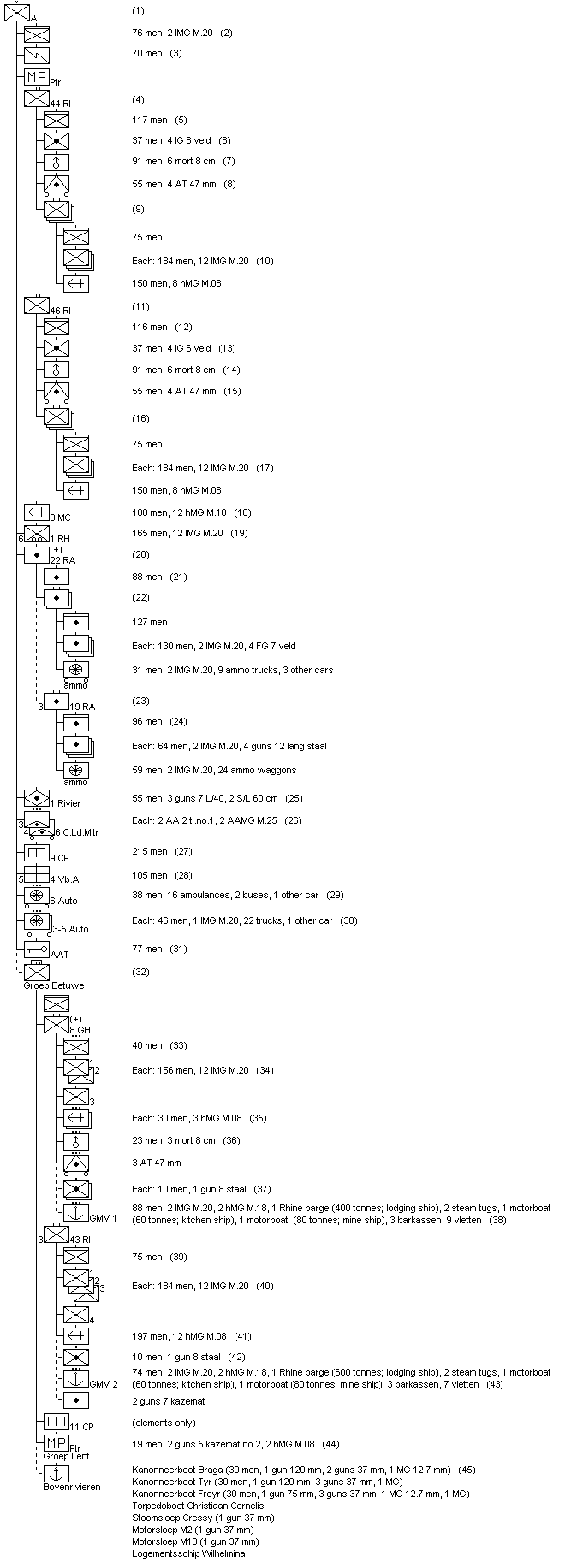 3-8 GB and 4-III-43 RI were formed from gd Gent, gd Beek and dd Nijmegen (spoorbrug en brug gewoon verkeer) on 1st February 194046.
