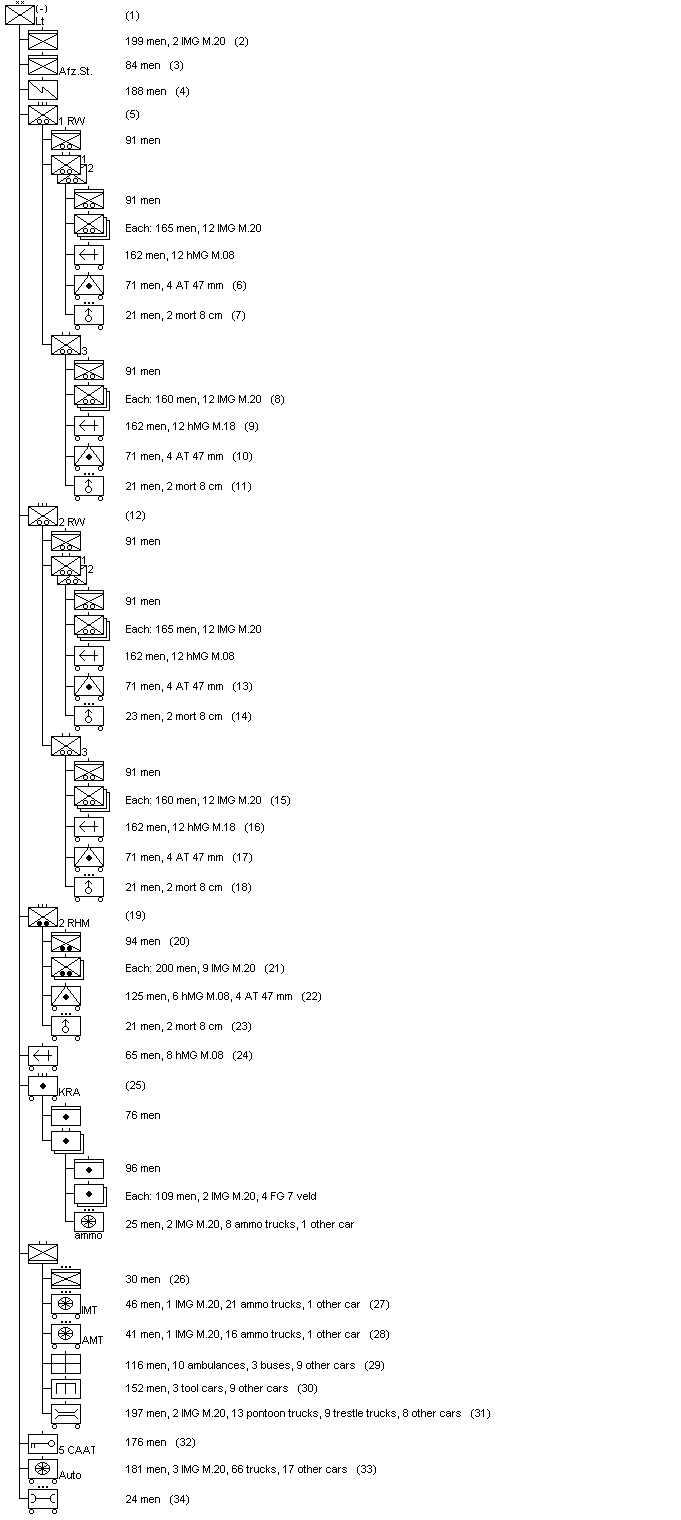 3. Personnel strength for the cavalerie commando, from which the Afzonderlijke Staf had been formed (Oorlogsorganisatiën, p.56). The Afzonderlijke Staf was formed on May 1st, 1940 from the cavalerie commando; some personnel of the commando were transferred to the regimental staff of 5 RH.